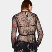 Shift dress from Ganni in Total Eclipse. Allover floral print. Round neckline. Concealed back zip closure. Long sleeves with black piping at cuff. Straight hem. Unlined. Casual fit.